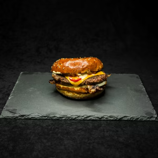 Tortilla, ramstek, iceberg salata, luk, rajčica, kiseli krastavci, prženi luk, cheddar sir, homemade umak -
